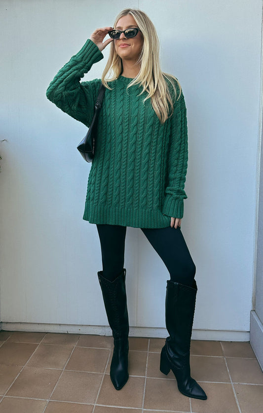 Day to Day Tunic Sweater ~ Emerald Cable Knit