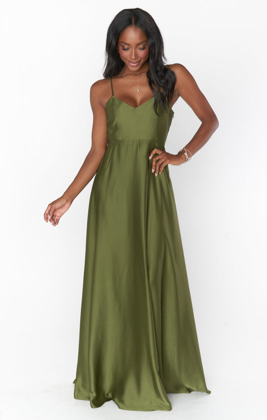 Faith Maxi Dress ~ Rich Olive Luxe Satin