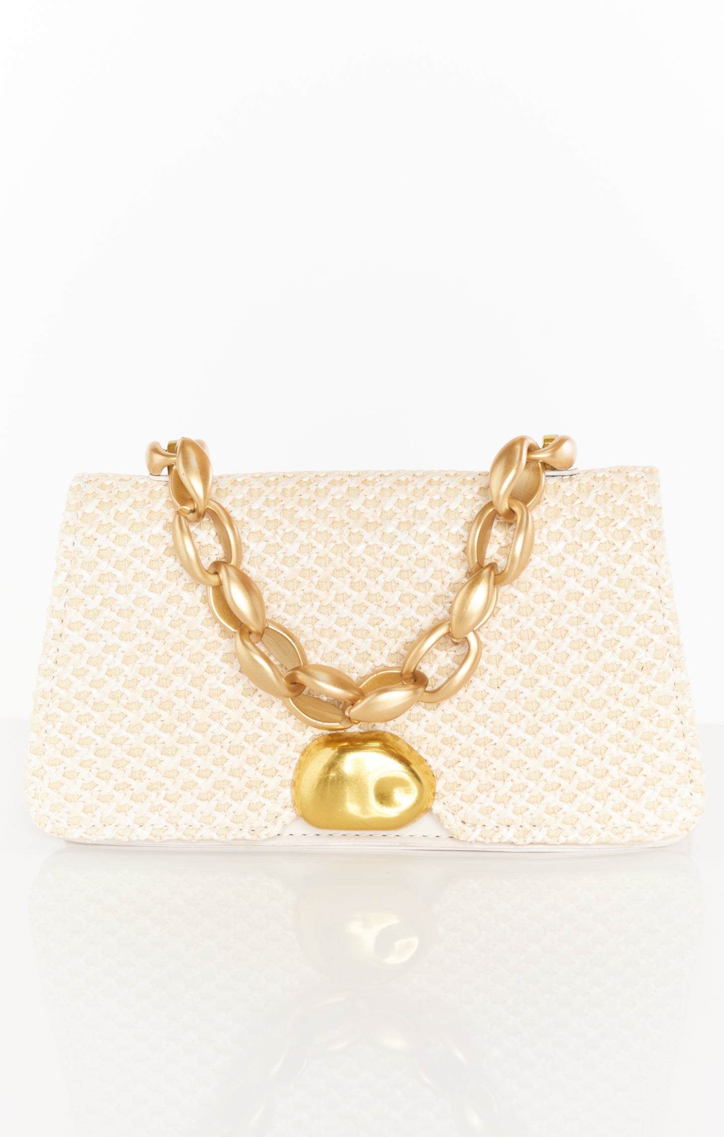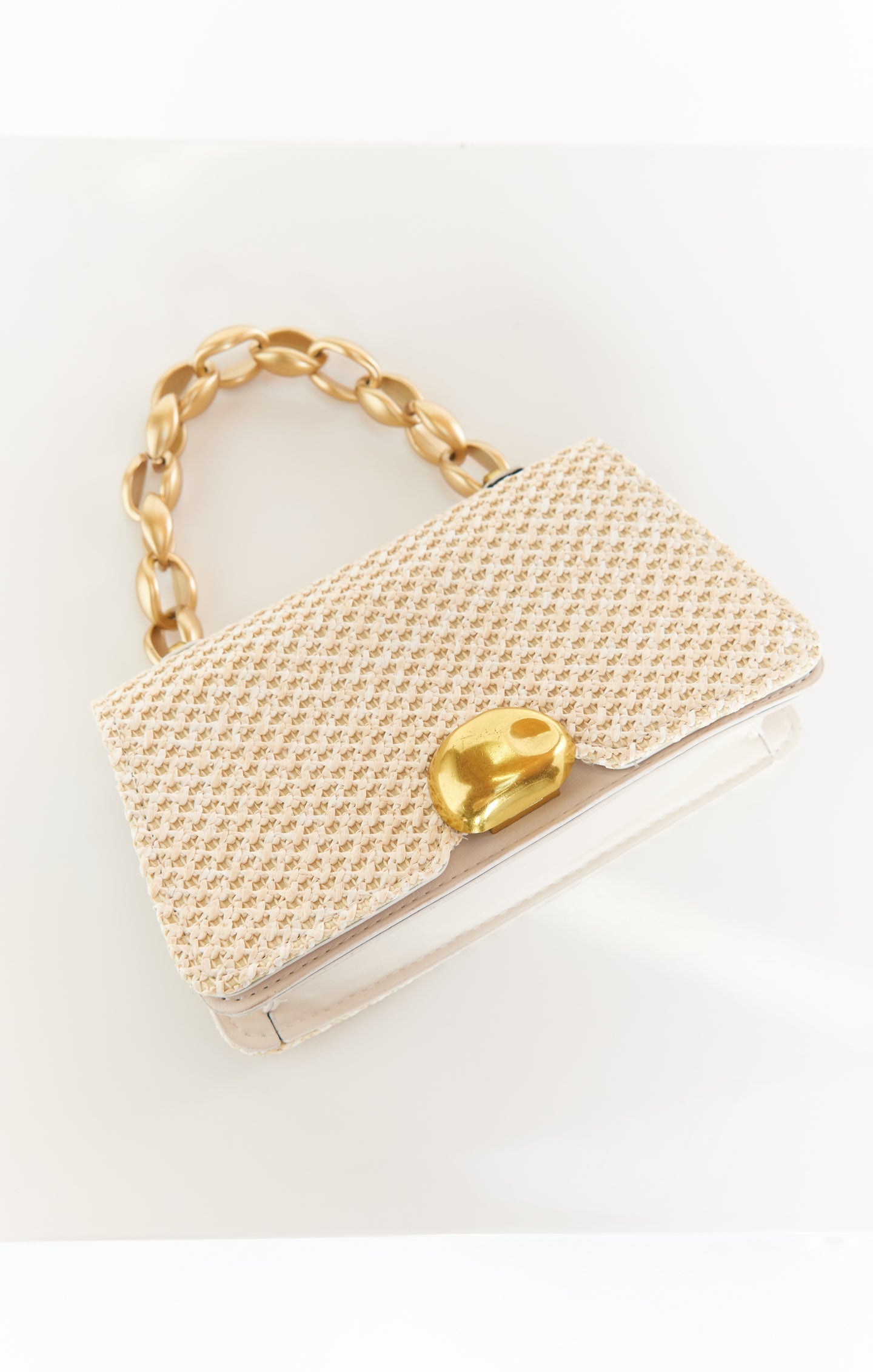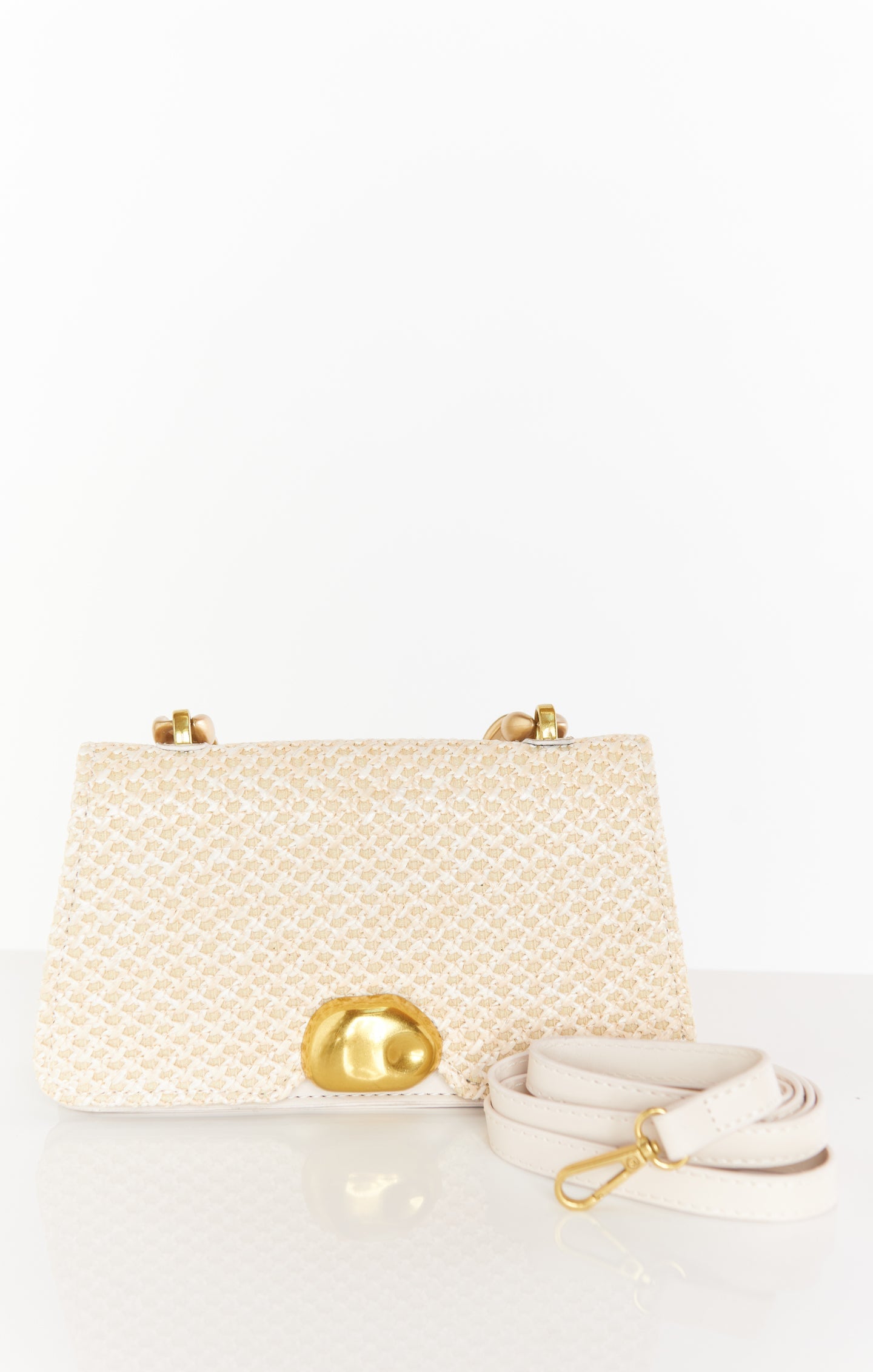 Agnes is intended to be your go-to purse for all of your events this season! Featuring a neutral woven fabric and gold hardware, Agnes will go with absolutely everything!