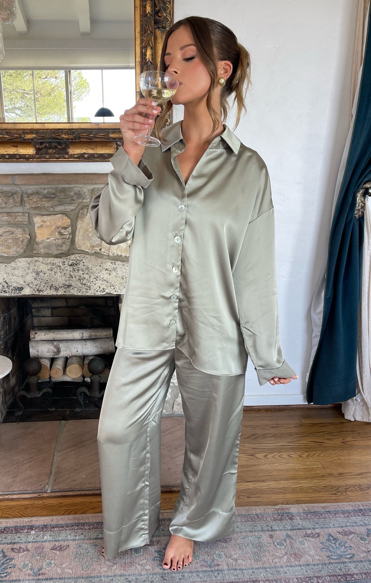 Always and Forever Button Down ~ Moss Green Luxe Satin