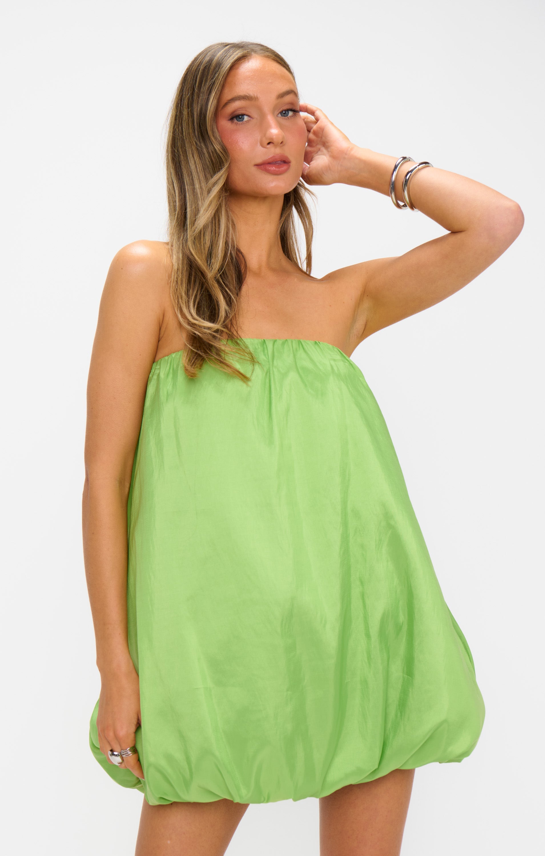 Beverly Bubble Dress ~ Key Lime Light Taffeta