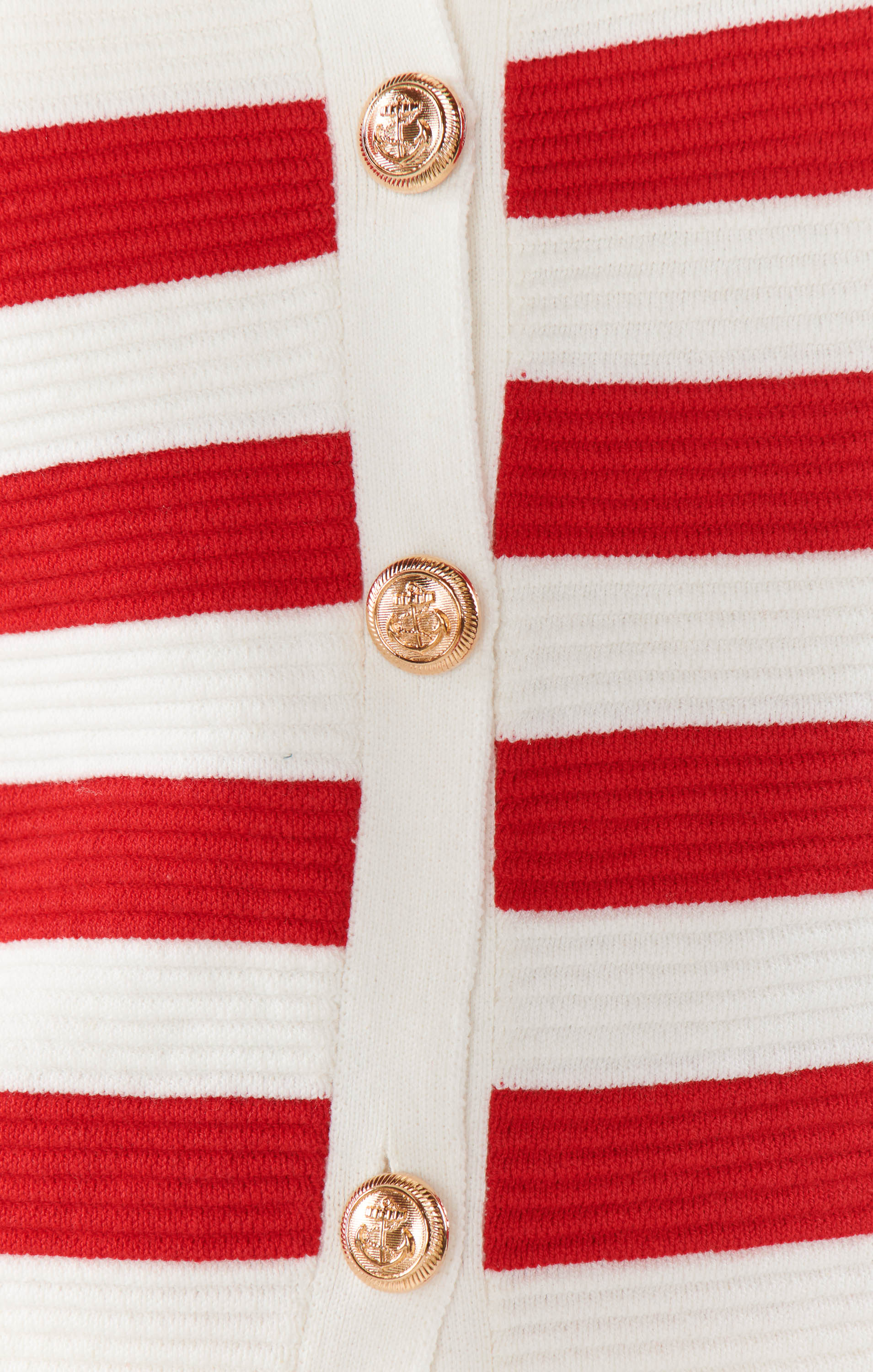 The Devin Tank is a prep-style essential! Featuring bold red stripes and elevated gold buttons, this knit top has just the right weight for a polished look. Pair it with the matching shorts for a chic set, or style it with jean shorts and ballet flats for a casual stroll around town.