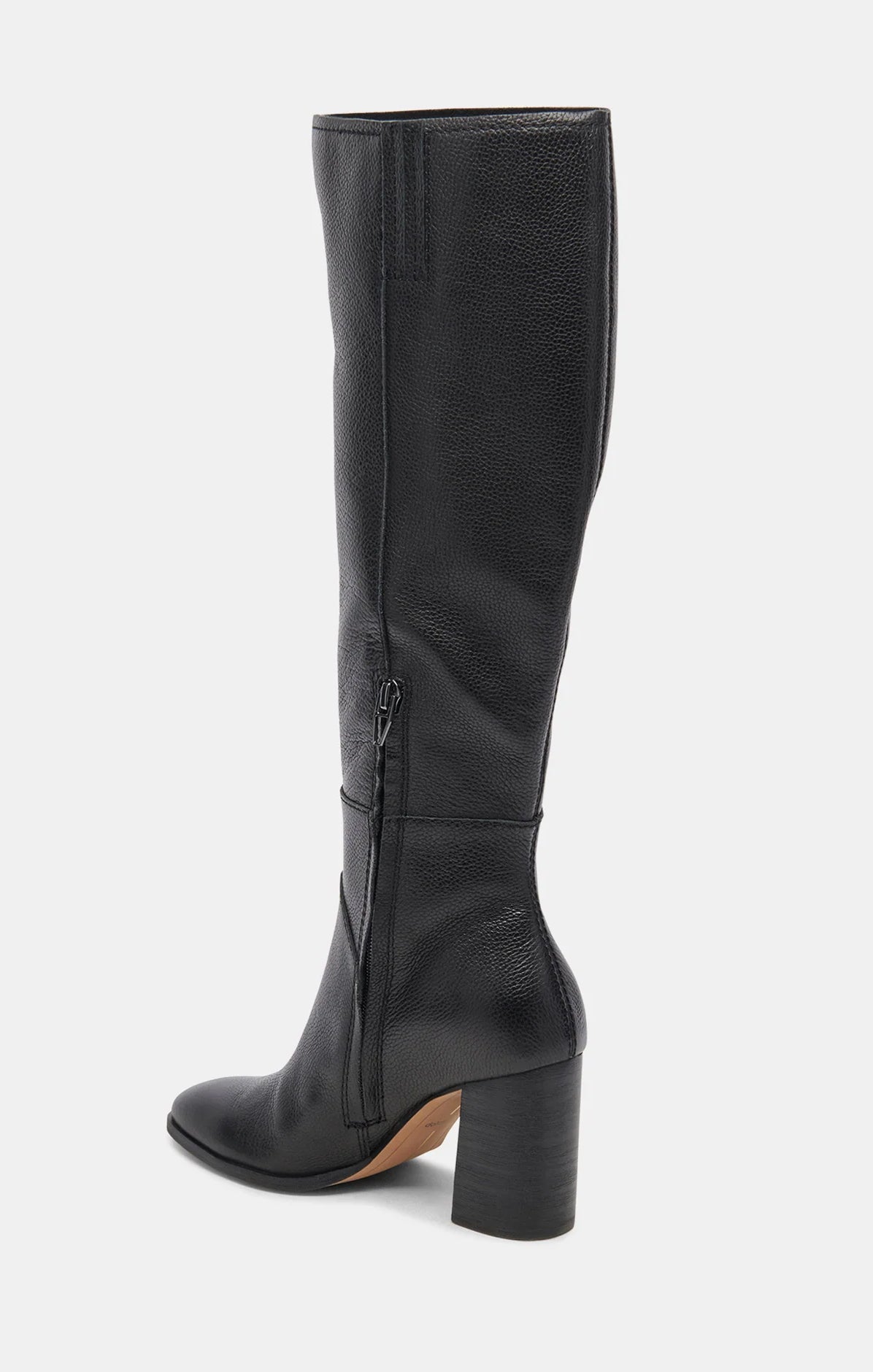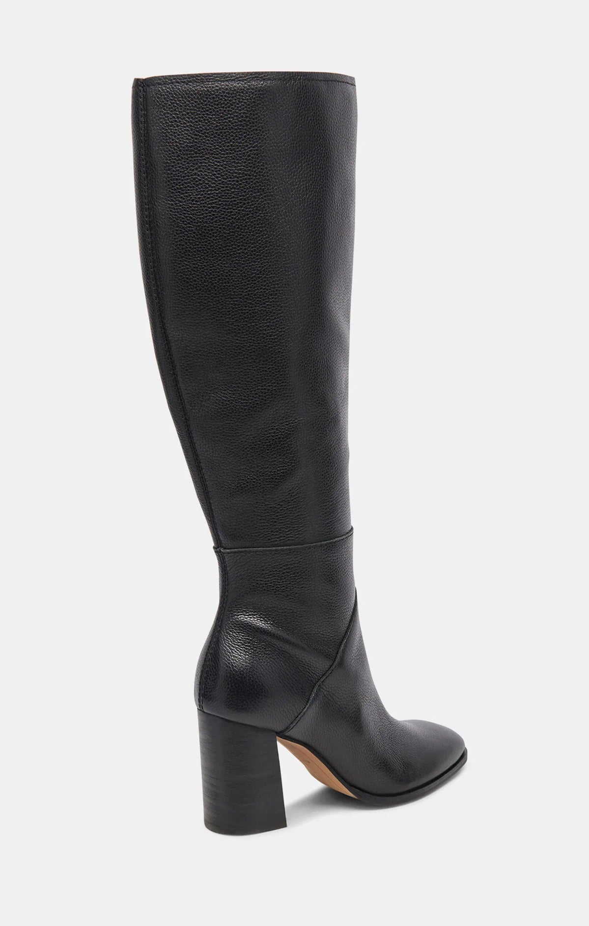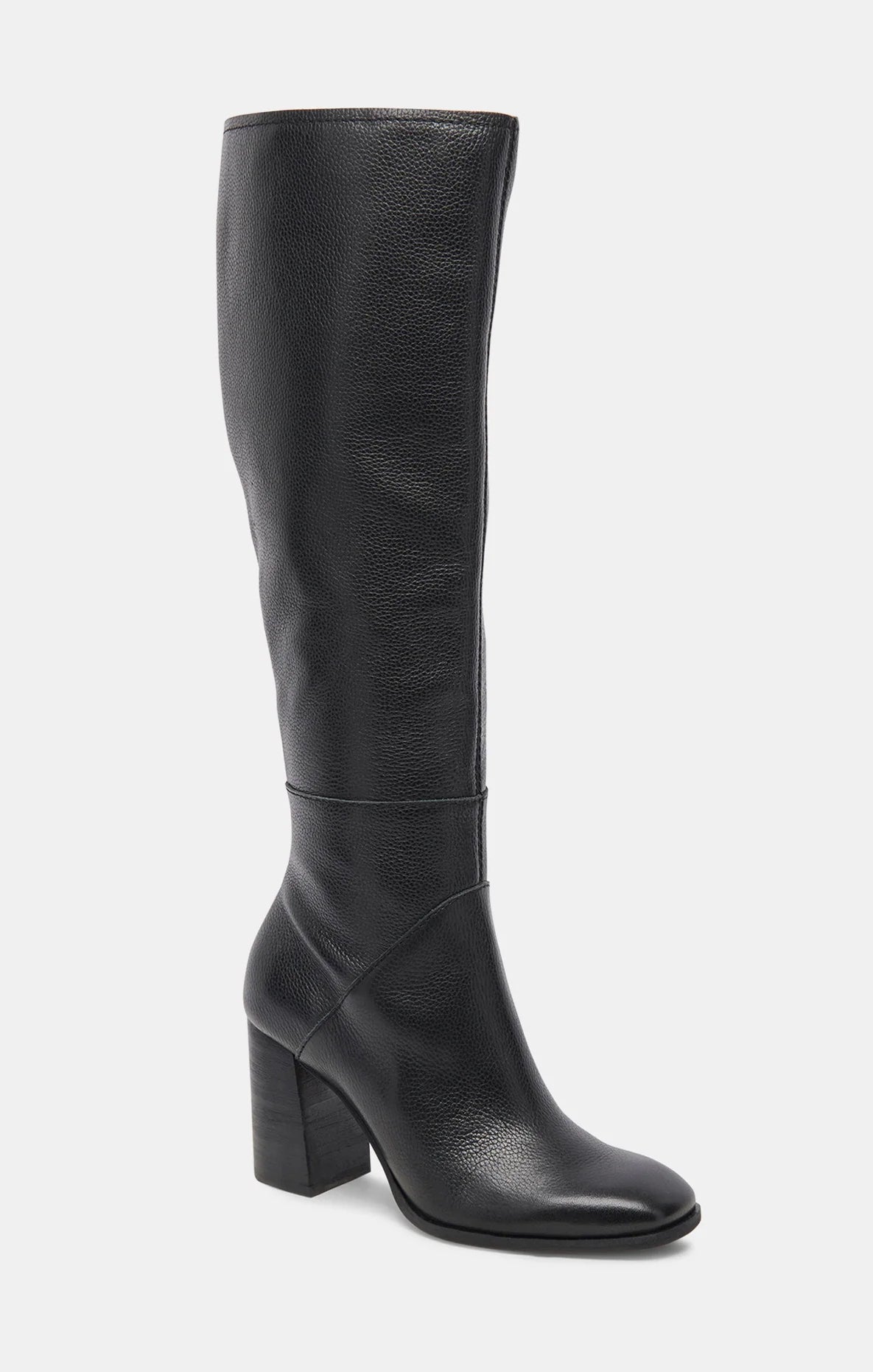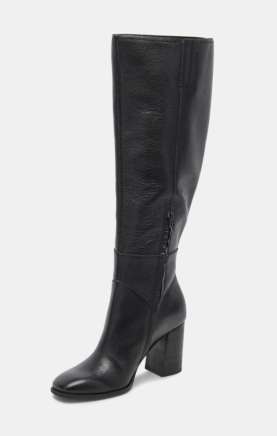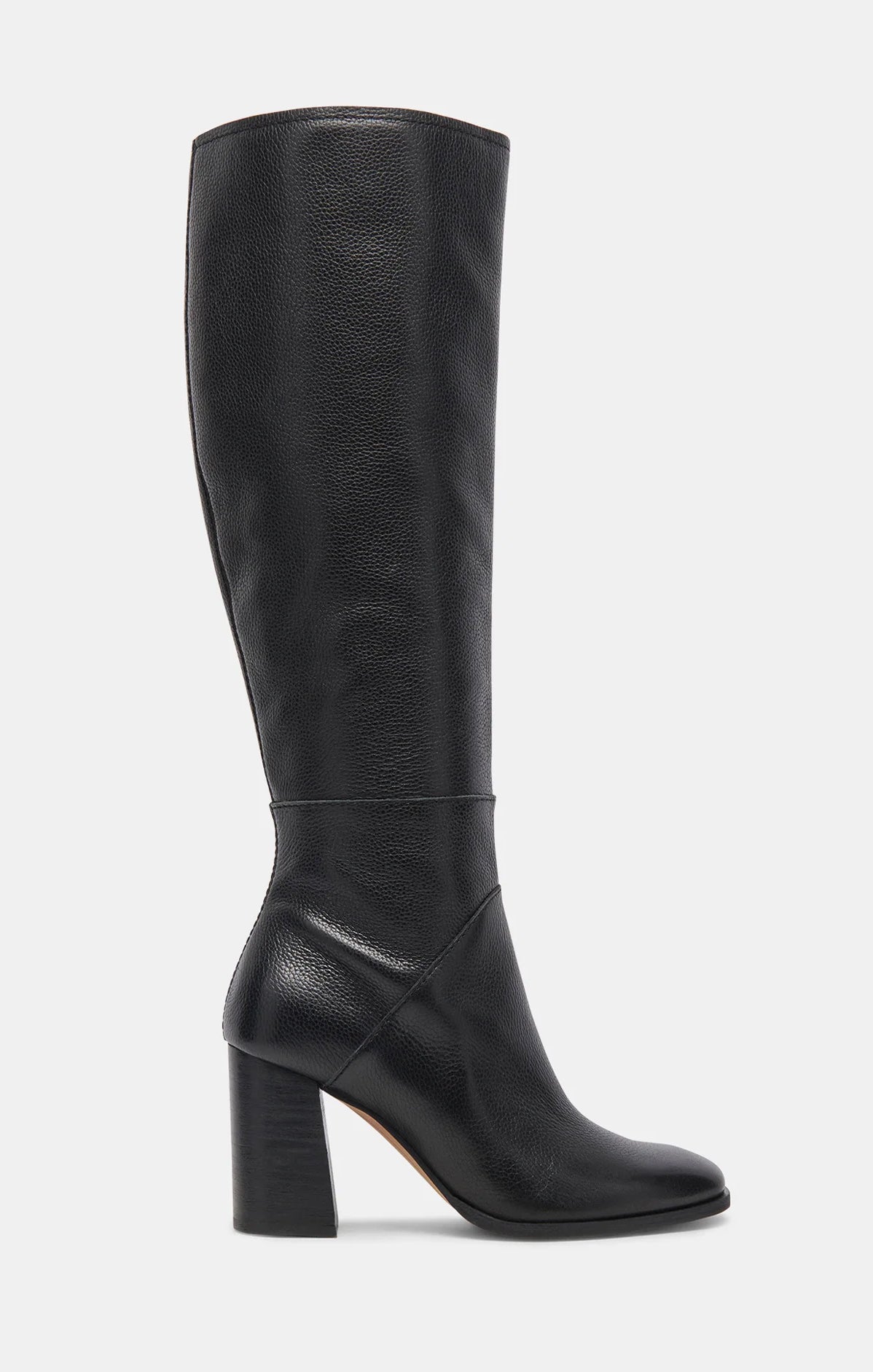 A knee high boot that takes fall dressing to the next level. Fynn adds drama and texture to this season's midi dresses and mini skirts alike. And she's made with recycled materials, for an earth conscious added benefit.