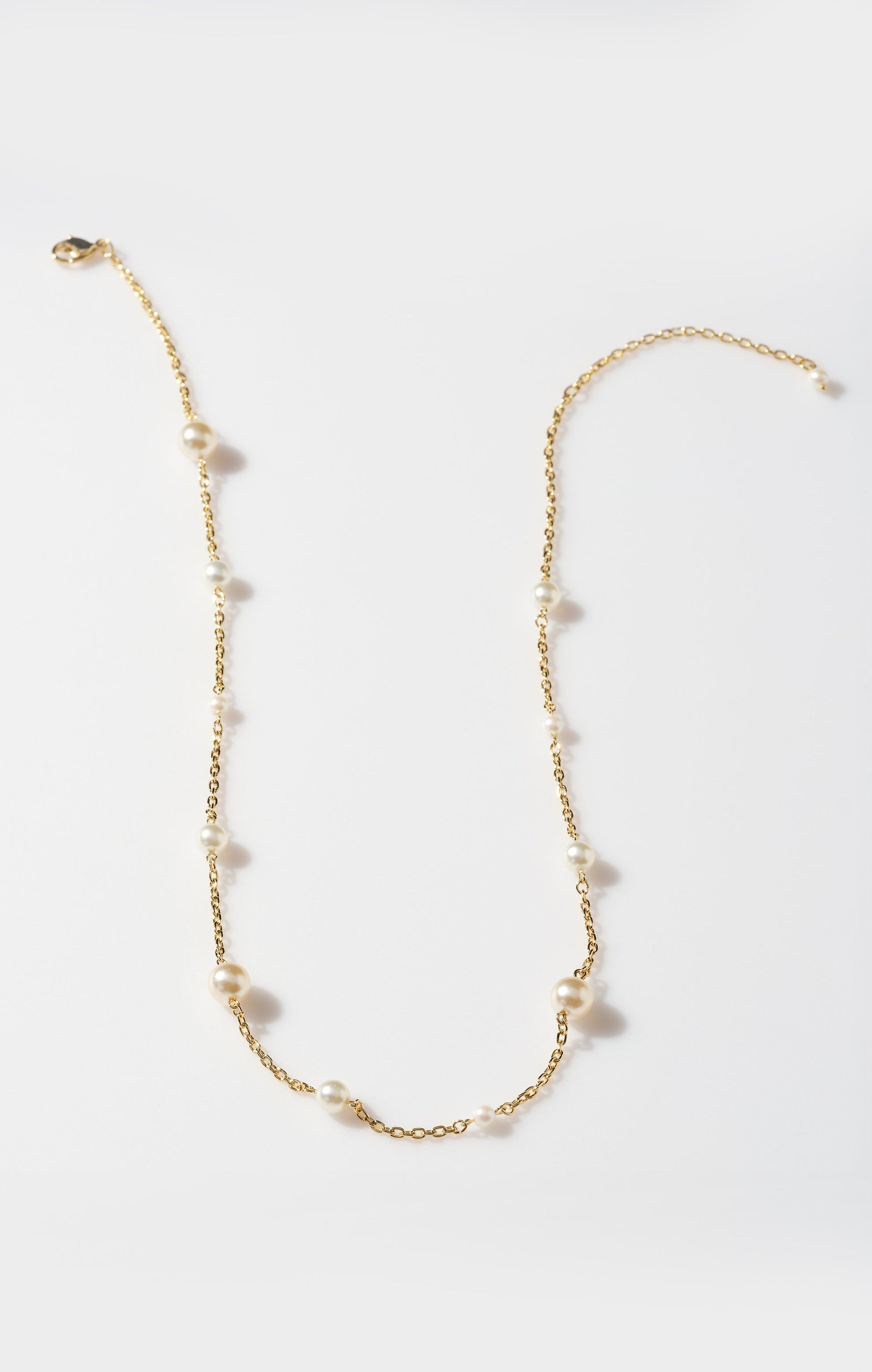 So lightweight, you won't even know they're there! Dainty faux pearls scattered along a delicate chain.