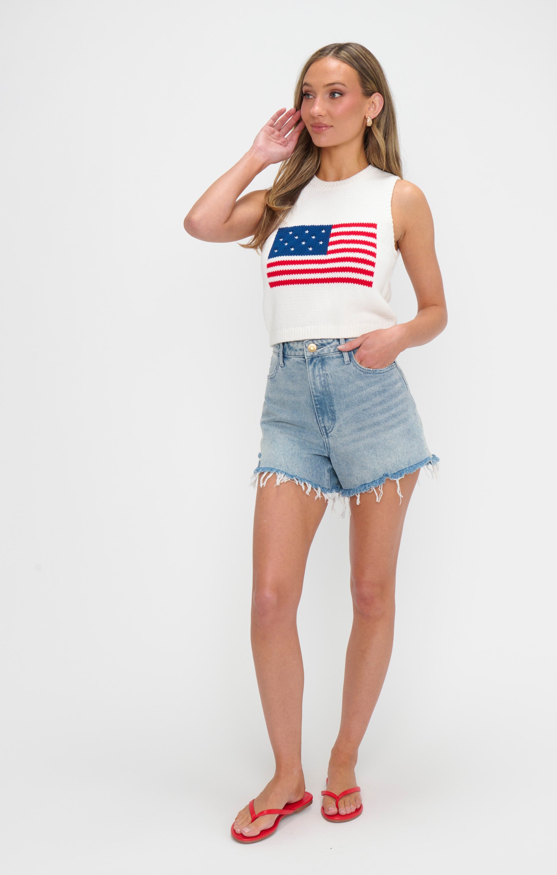 Show off your stars and stripes in this relaxed, ultra-cozy knit top. Perfect for laid-back days by the lake!
