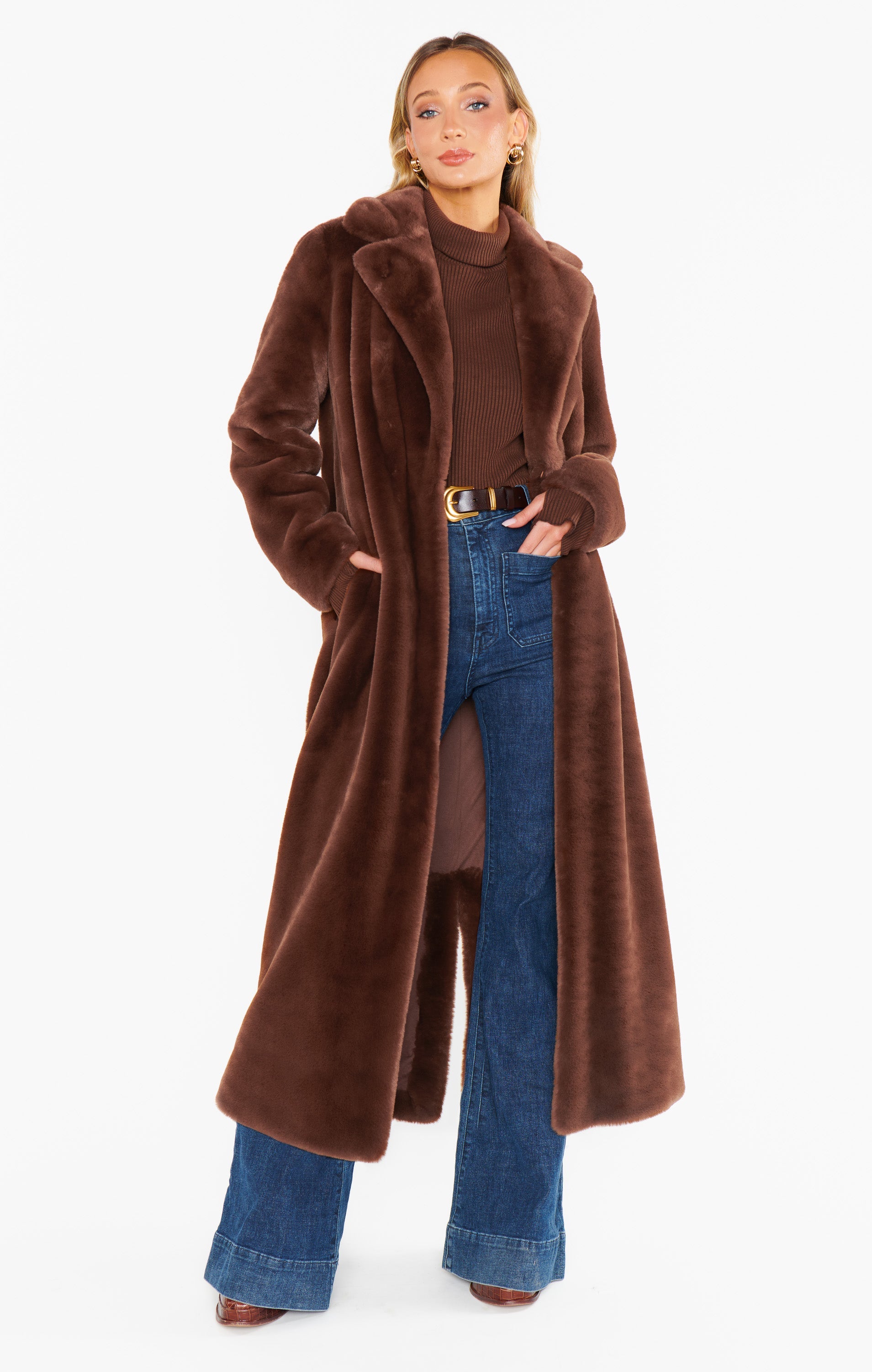 The Miss Tiffy Fur Jacket is what all winter dreams are made of with its cozy brown faux fur. If you're ready to channel that effortlessly cool style, rock this long-line jacket perfect for the winter season, or an evening of drinks with your gals.