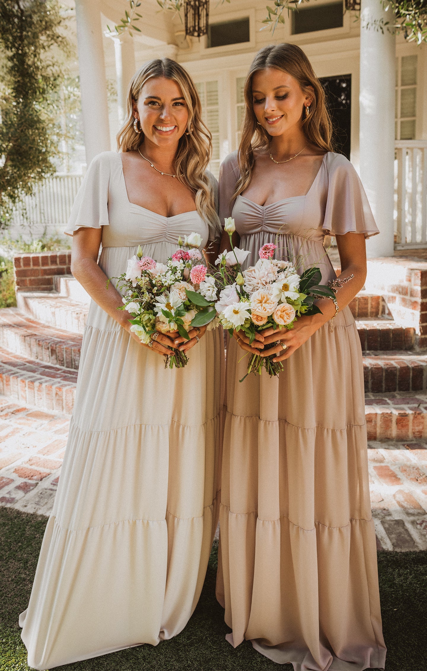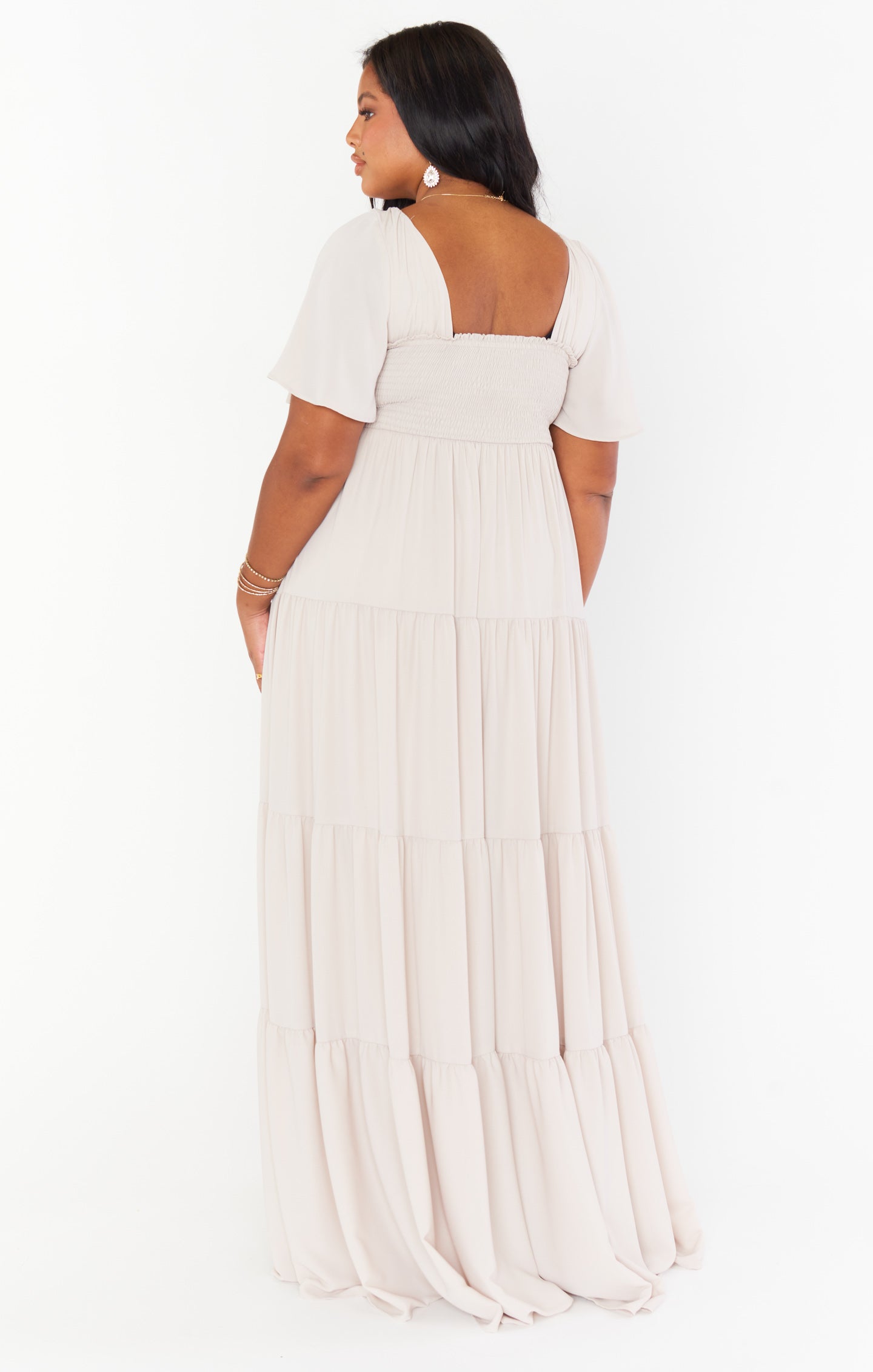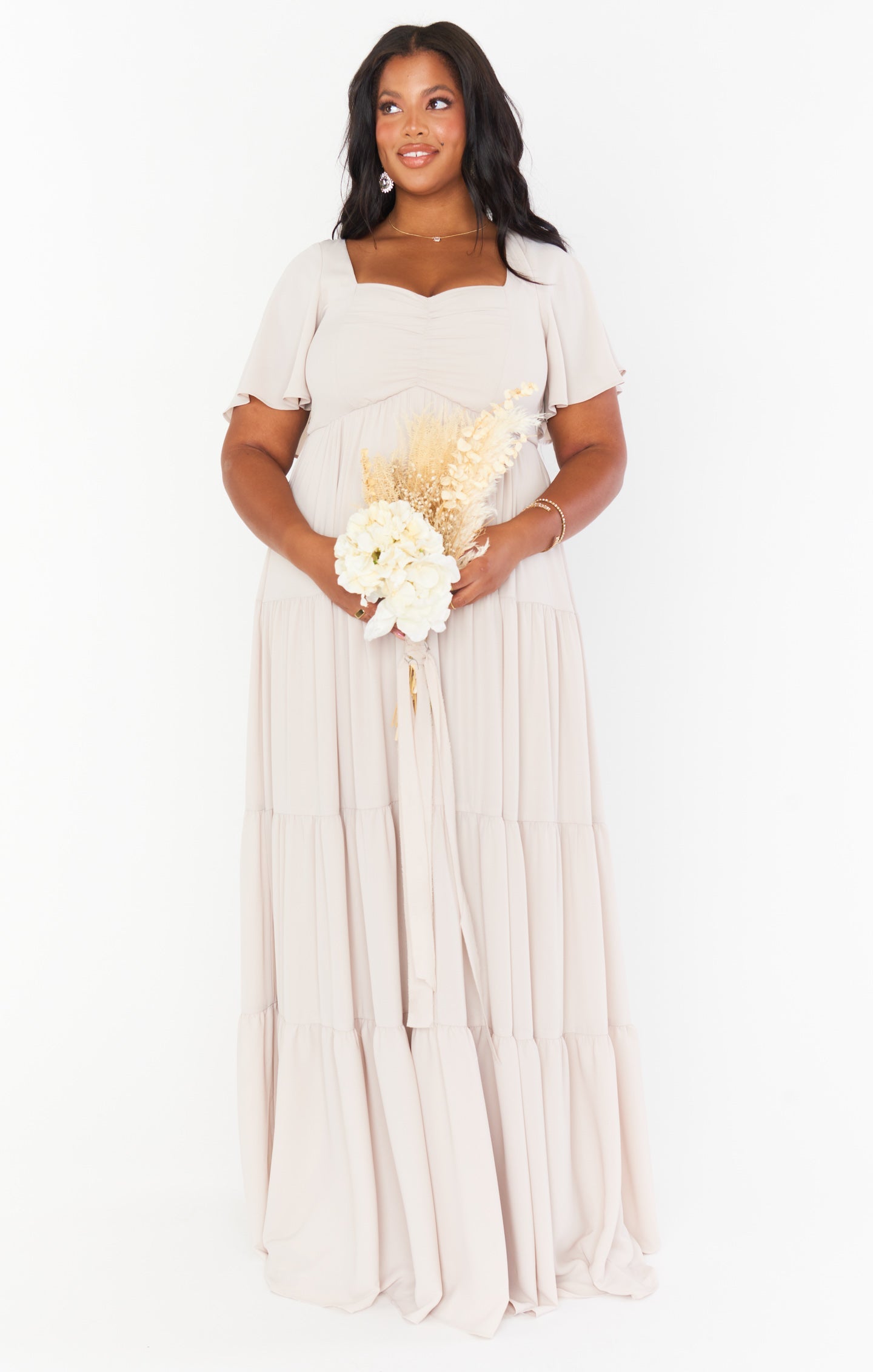 A winning combination of all our bestselling moments, this flattering maxi has a sweetheart neckline with a smocked back to ensure a perfect fit on your bust. Flutter sleeves offer dainty coverage and a tiered skirt adds the ultimate boho flow! The empire waist makes this a great maxi dress for moms to be! So whether you're a bridesmaid or a momma with a special event to attend, the Nicole will take care of you.