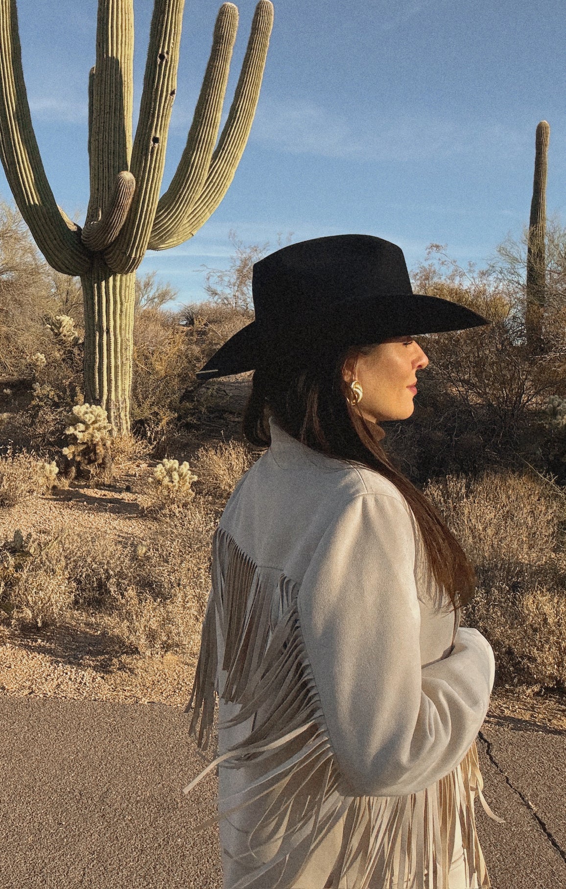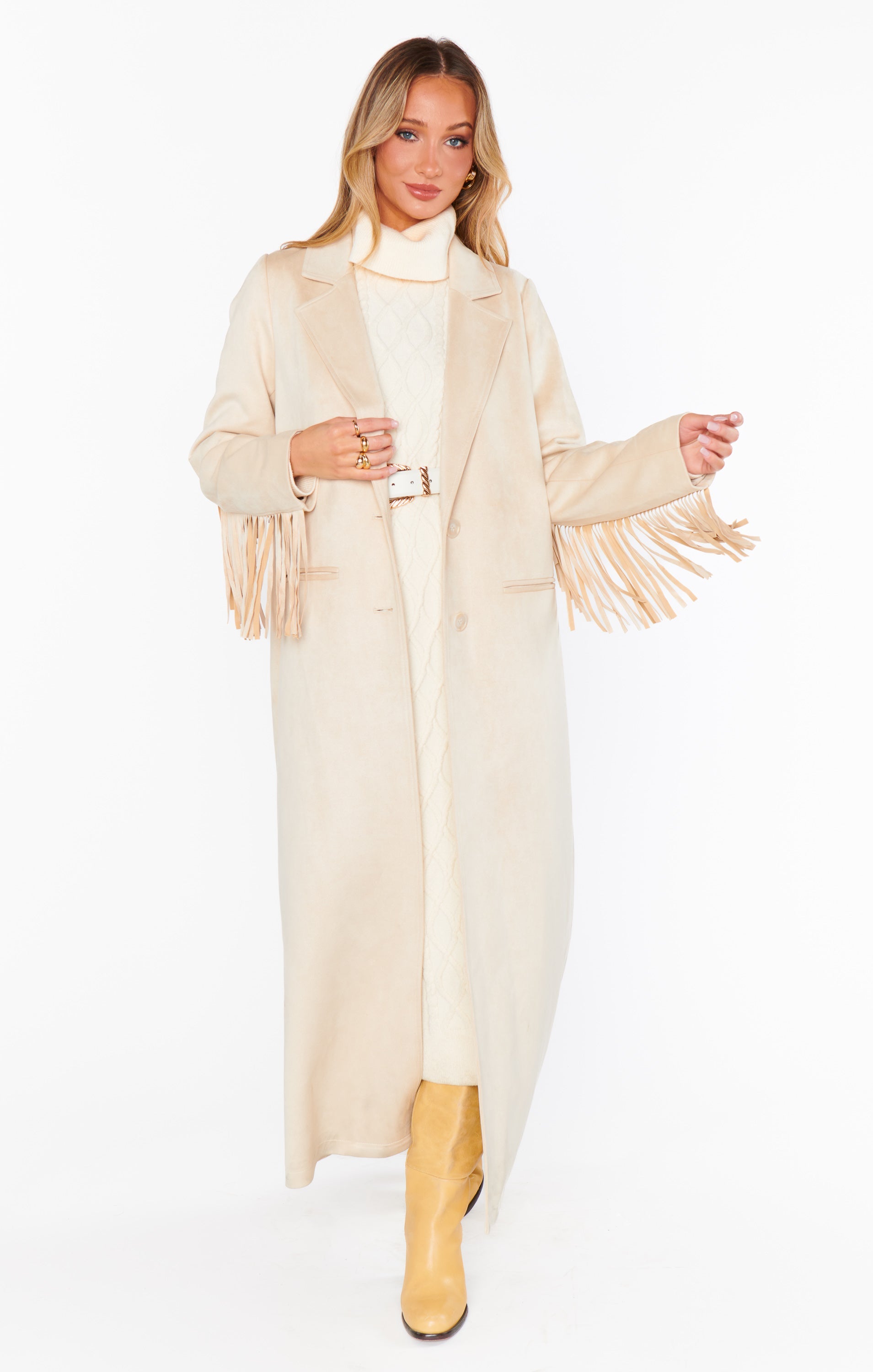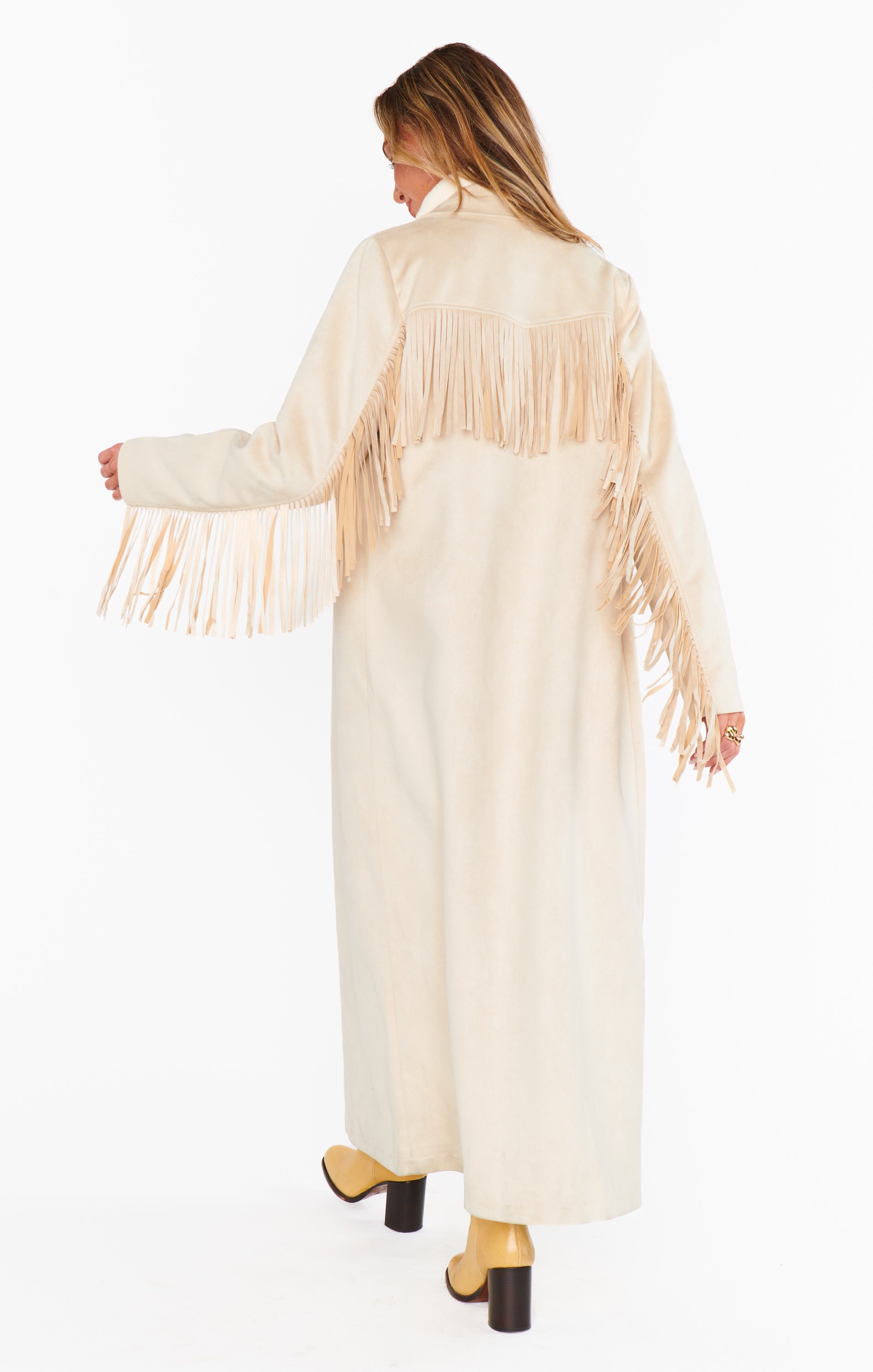 Sierra Fringe Maxi Jacket ~ Cream Faux Suede