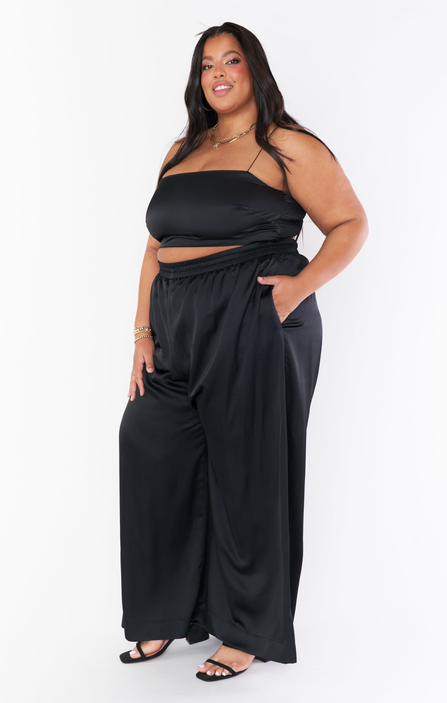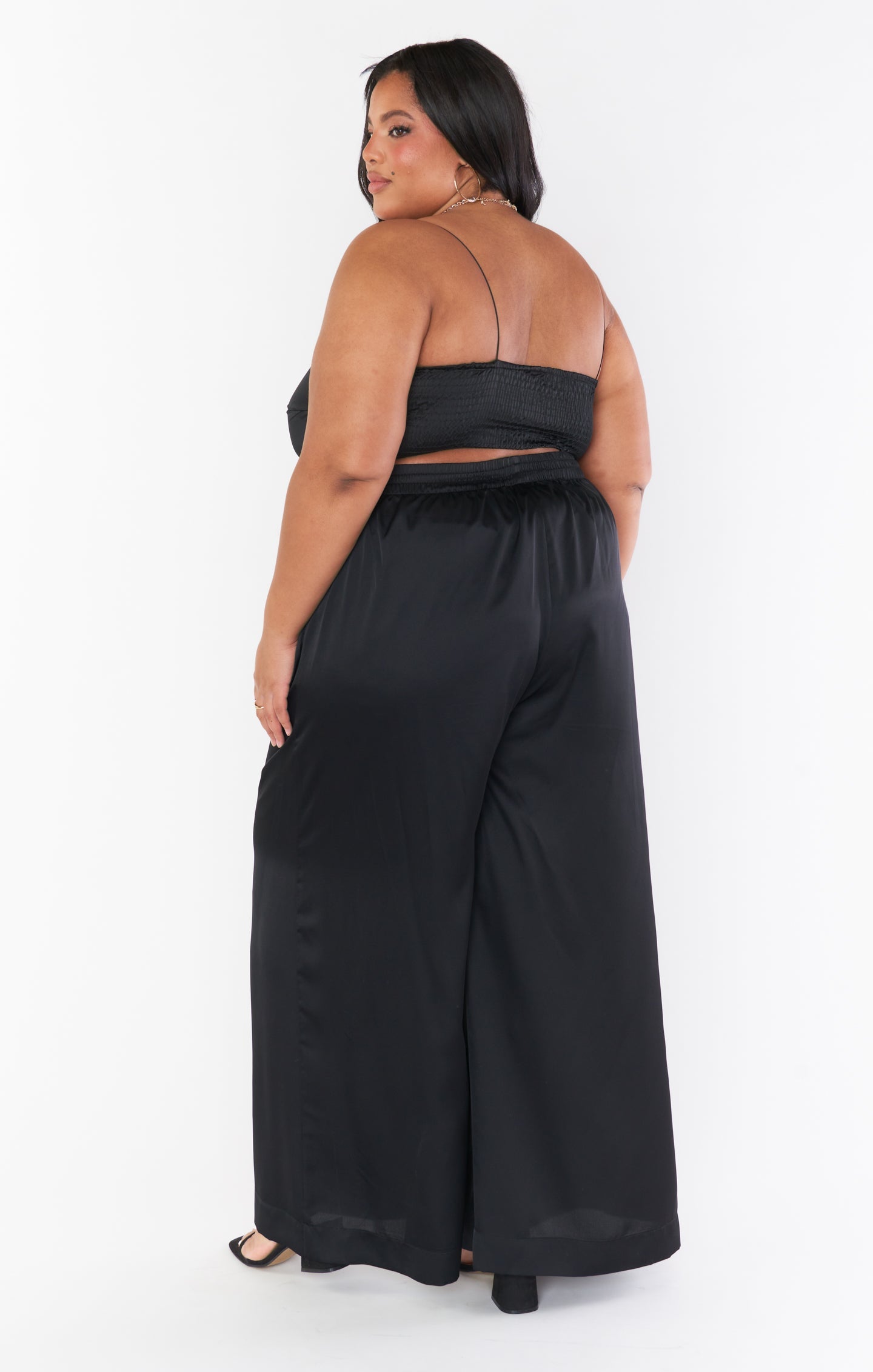Turn heads in the luxe satin Tucker Top. This silky little number features a straight neckline with spaghetti straps and a smocked back for the perfect fit. A perfect match with the Meet Me at Midnight Skirt and simple earrings.