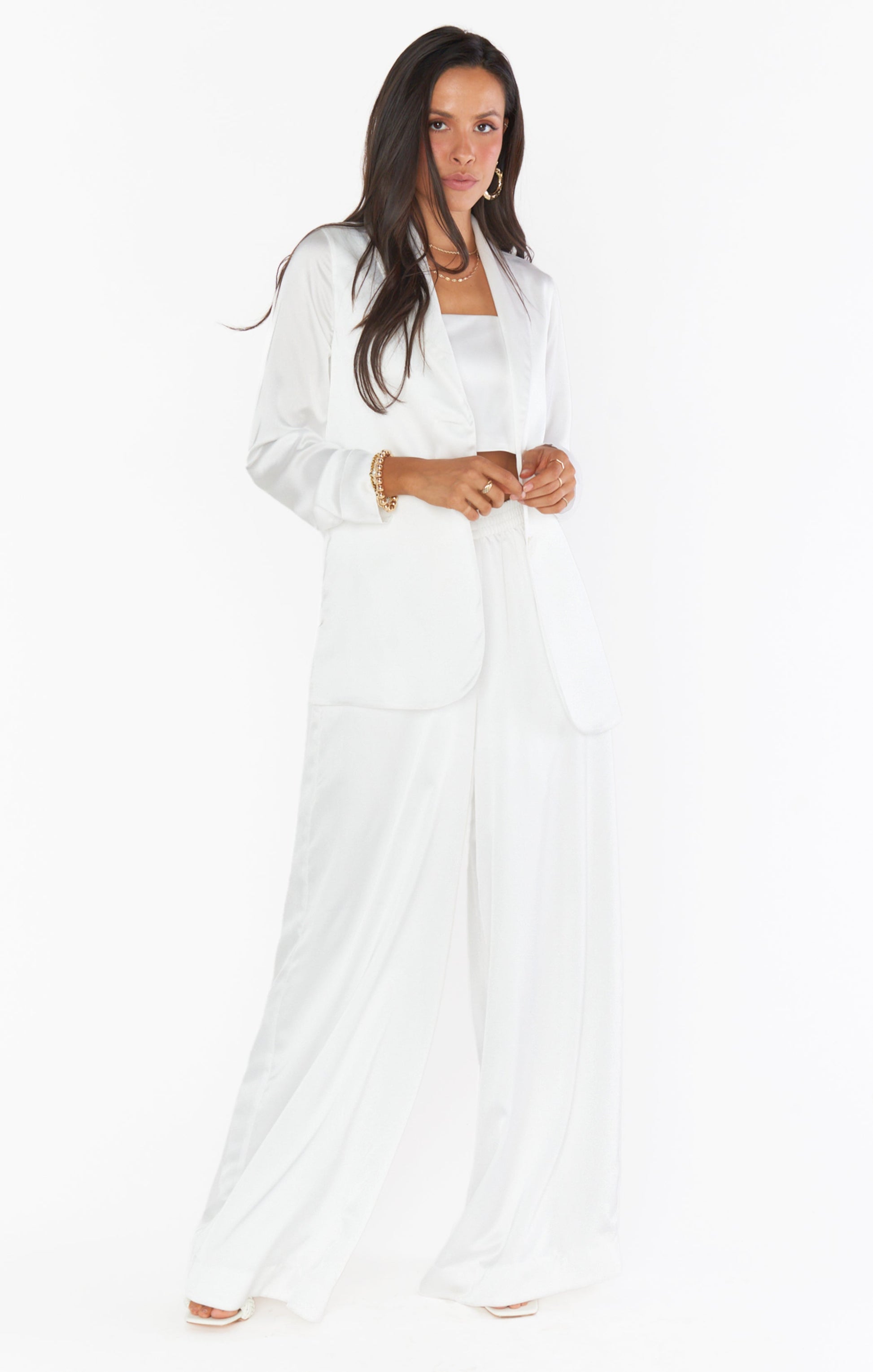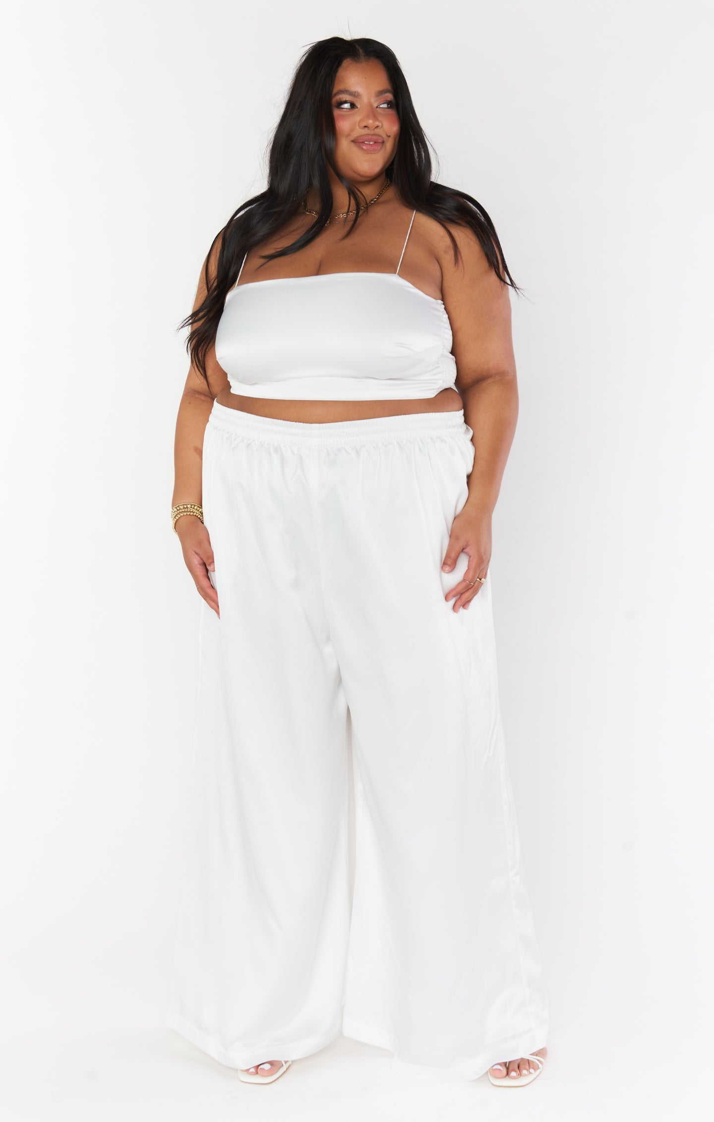 Turn heads in the luxe satin Tucker Top. This silky little number features a straight neckline with spaghetti straps and a smocked back for the perfect fit. An absolute vibe paired with the Irwin Pants and simple earrings.