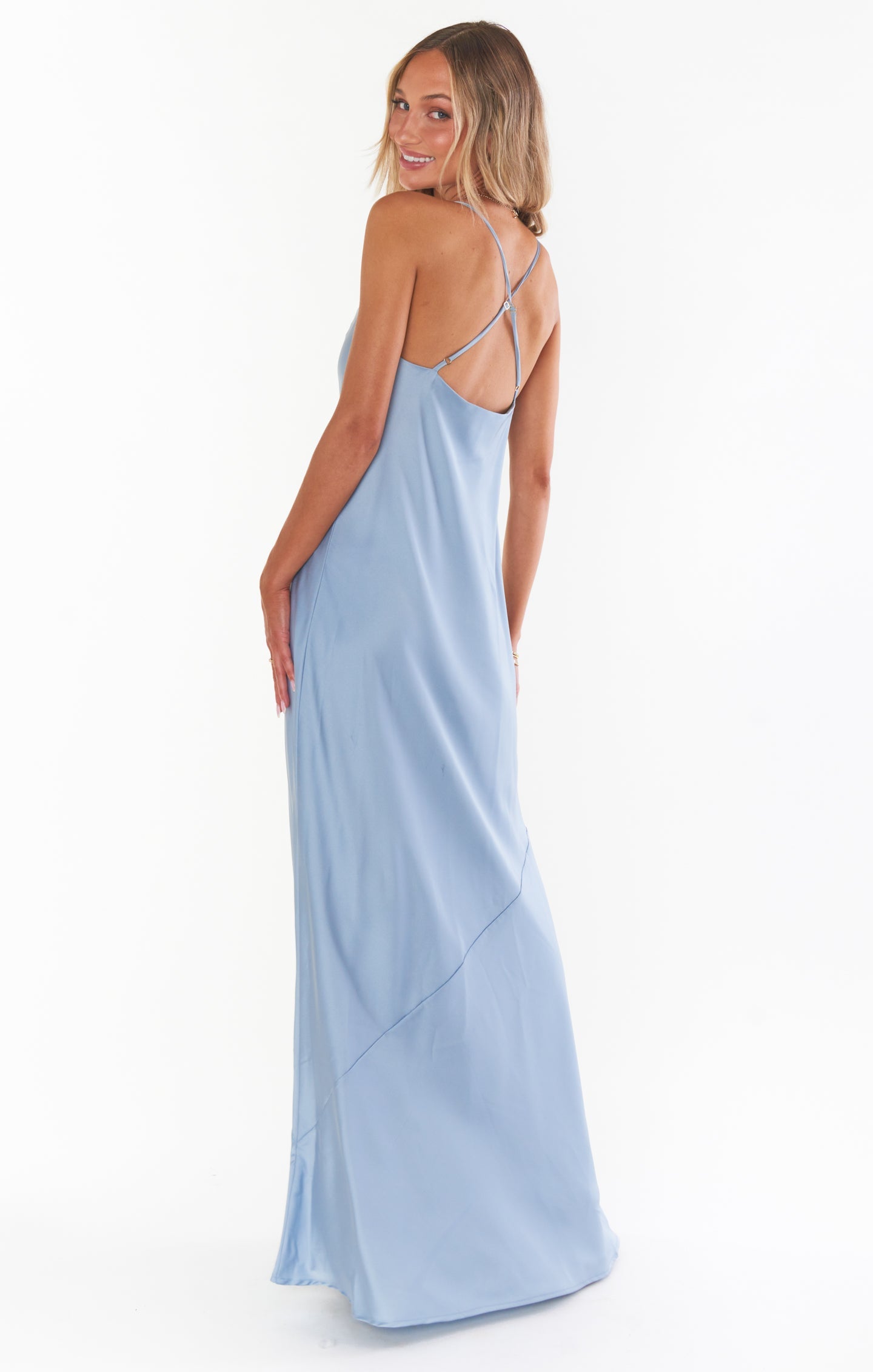 Tuscany Maxi Slip Dress ~ Steel Blue Luxe Satin