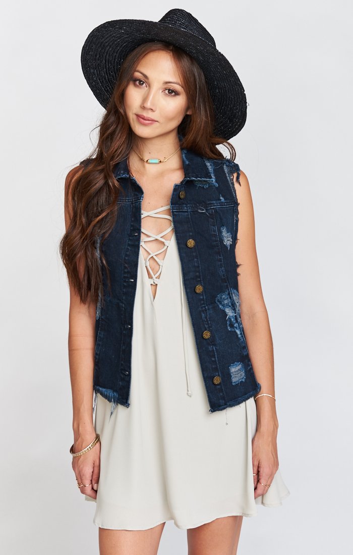 Welcome to the heart of boho grunge. Like a true artist, the Venice Vest is cut off, tattered and torn in all the right places. Buttons up the front and darted down the sides for fit so flattering you will want one in each color wash.