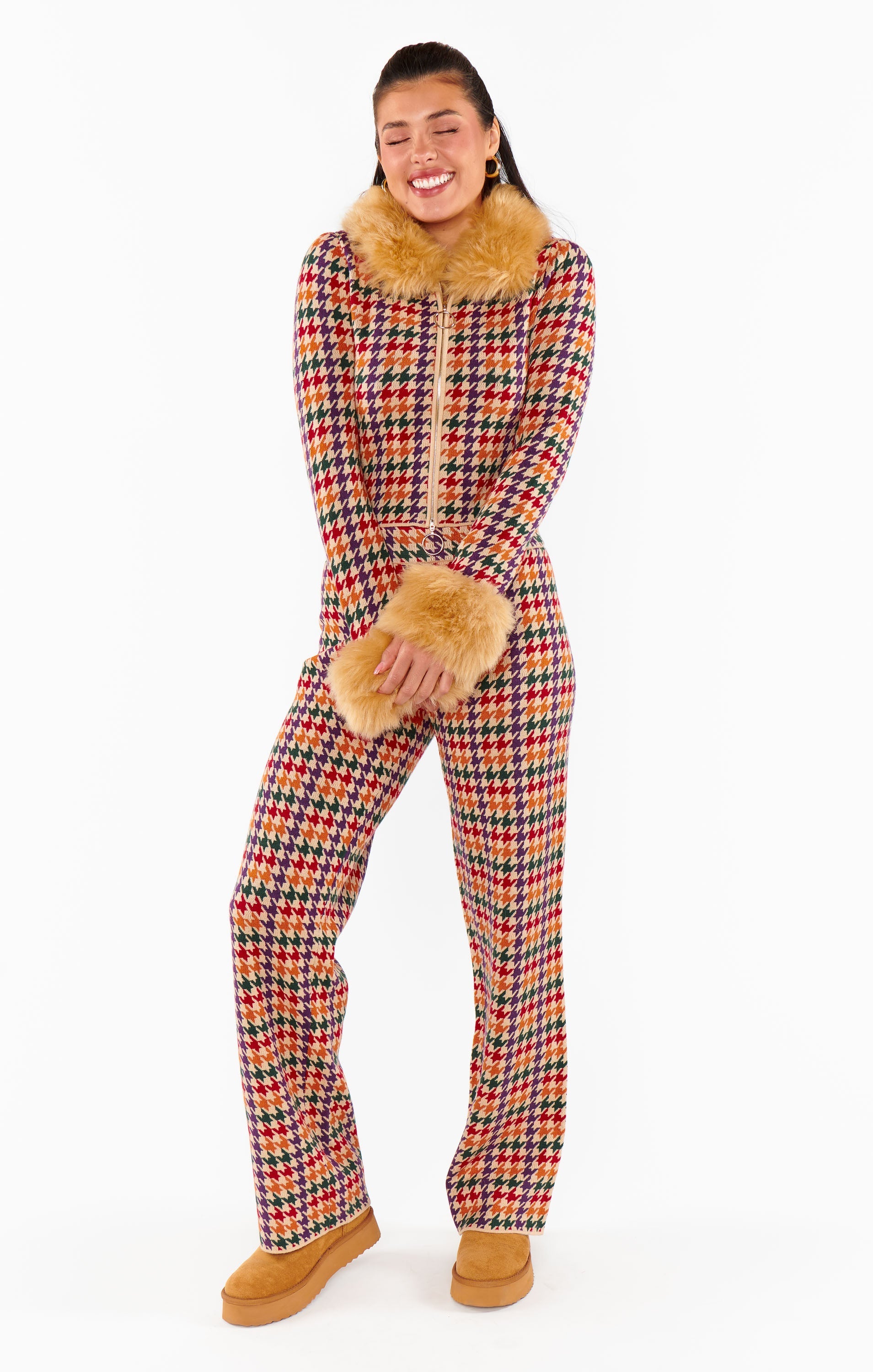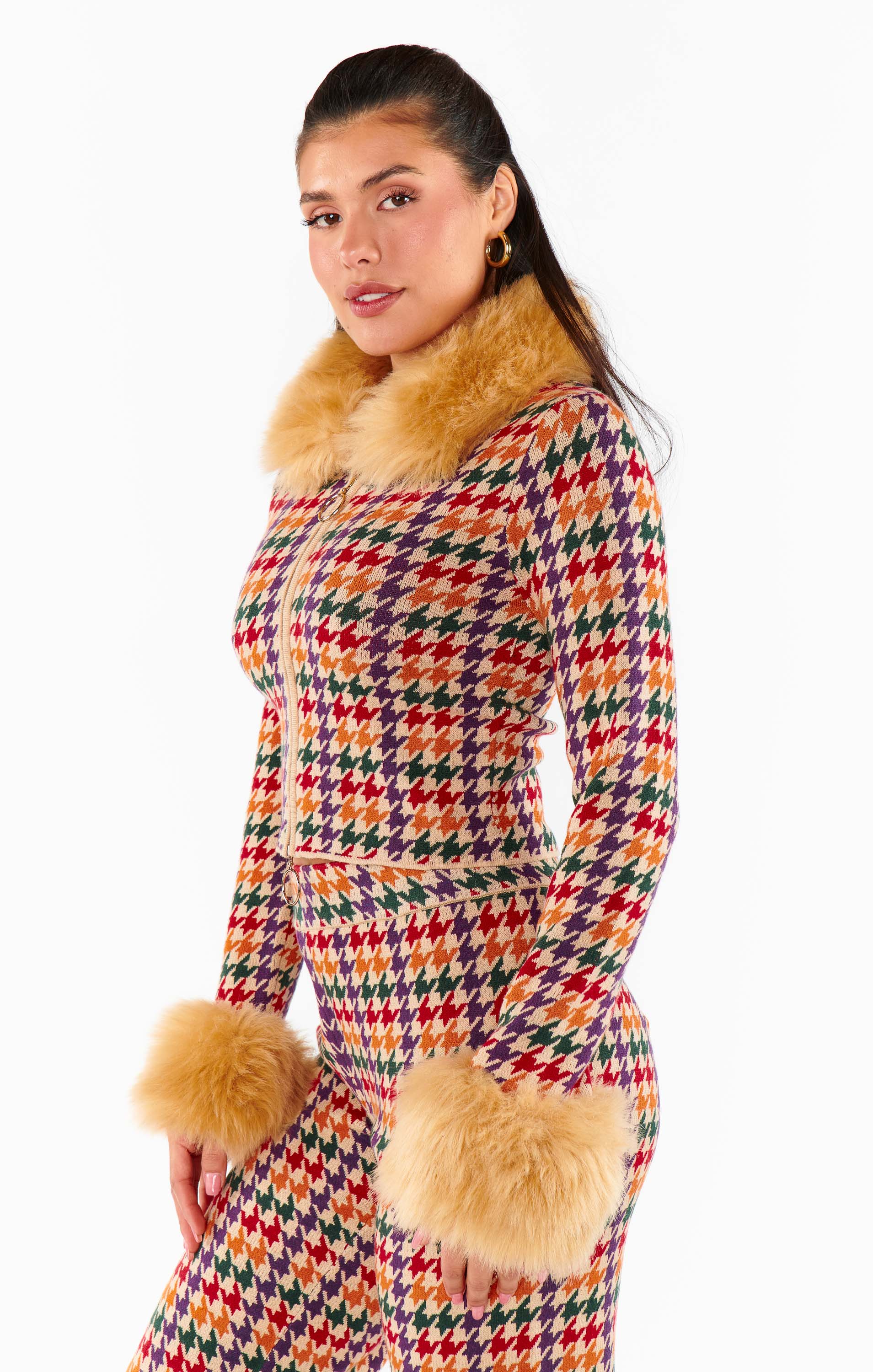 Zermatt Zip Up ~ Valley Houndstooth Faux Fur
